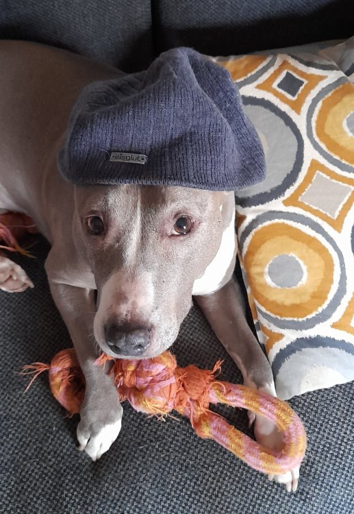 Bedankt voor de verheldering. Onze is een Amstaf terriër en groot knuffelbeest. Hoop dat Spud niet vindt dat ik haar draadje vervuil. -