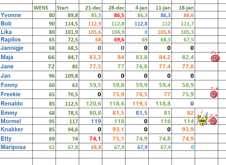 Goedemorgen, als je idd gaat door emmer en over spijt en 'wat als' gevoelens, dan wordt je volgens mij op den duur zo'n 'oude chagrijnige zeur' die niet meer vrolijk met zichzelf kan zijn Want o wat heb ik mezelf teleurgesteld, oh en.. Al die anderen ook Nou, ik heb mezelf van de week opgegeven voor een groepsles cardio boxing van 10 tot 11 jeetje net van bed.. Koffie net klaar en over een half uur moet ik weg.. Ook nog ff een broodje eten tussendoor