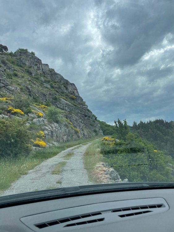 bumperjim Geplaatst 28 mei Rapport Geplaatst 28 mei (bewerkt) Beetje leuker onderwerp nu. Vorige week ging ik ff kijken bij een opvangadres voor de hond. Hemelsbreed lag het op 21 km. Maar hier in de buurt ben je dan al gauw een uurtje bezig om er te komen. Zeker als je iemand tegenkomt want dan moet er eentje heel lang achteruit. Zeiden ze ook nog, het laatste stuk van de weg is afgelopen winter ingestort dus daar moet je stoppen en dan de laatste 400 meter lopen. OK.... 🤪 Ik ben niet gauw bang dat ik een ravijn inlazer maar dat instortingsverhaal hadden ze me beter niet kunnen vertellen 😱 28 mei bewerkt door bumperjim